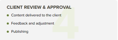 Absolutely. Every client receives drafts for review and approval before anything goes live. You’ll have the opportunity to provide feedback, request revisions or suggest changes to ensure the content aligns with your brand voice. Our content marketing consultancy firm implements a two-round editing and proofreading process to ensure quality. This includes both stylistic and technical editing (checking for grammar, tone, keyword integration, formatting and flow).