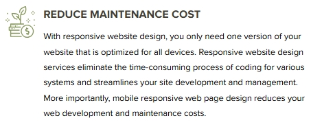 Responsive design is a method that’s fast becoming the norm. It is a website design that scales to display on different devices regardless of their size or screen. This means your content on the site is always clear and optimized for user experience, no matter the device the user is viewing the website on. It’s a way to make websites look great on both desktops and mobile devices without requiring a separate mobile site. See some responsive websites that our professional web design services team has created for clients.