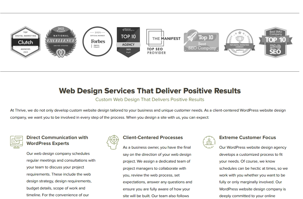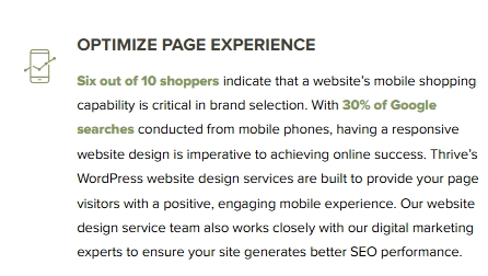 Thrive’s WordPress web design services are centered on optimizing your website for user experience and achieving long-term success. Our WordPress web design agency ensures your website checks off every part of Google’s Core Web Vitals: