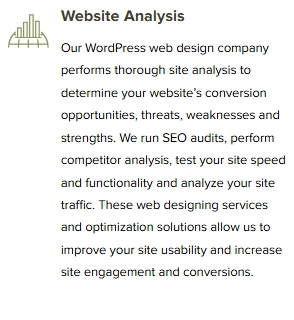 At Thrive, we spend time and effort to develop WordPress web designs that match your unique brand and suit your specific audience needs. Our WordPress web design company doesn’t use template designs and pre-packaged graphics. We perform in-depth site analysis, competitor benchmarking and audience analysis to identify your unique selling points (USPs) and determine your website’s clear conversion path.